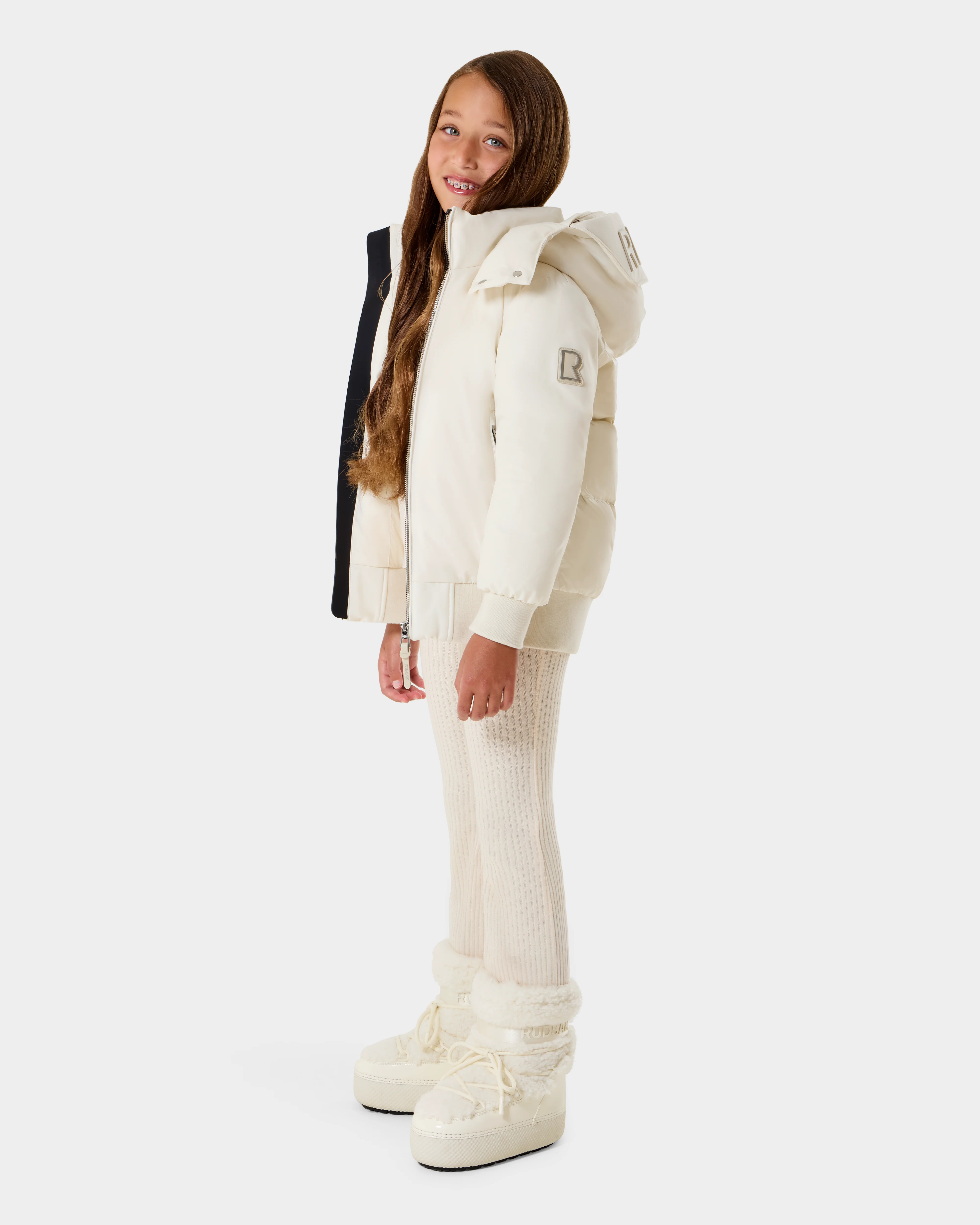 Cold days don't stand a chance with the BOOKER by RUDSAK is a versatile and stylish kids' quilted puffer jacket designed for both boys and girls. This bomber style is designed in our weather-resistant Recycled Stormshell body and features a contrasting back panel in recycled semi-gloss fabric, ensuring durability and a fashionable look. With a removable hood complete with storm visor, stretch-rib cuffs and hem, the BOOKER keeps your child warm when the temperature dips. The contrast silver zipper closures and heritage "R" logo detail at the shoulder add a sporty, trendy touch to this everyday essential for your little one.