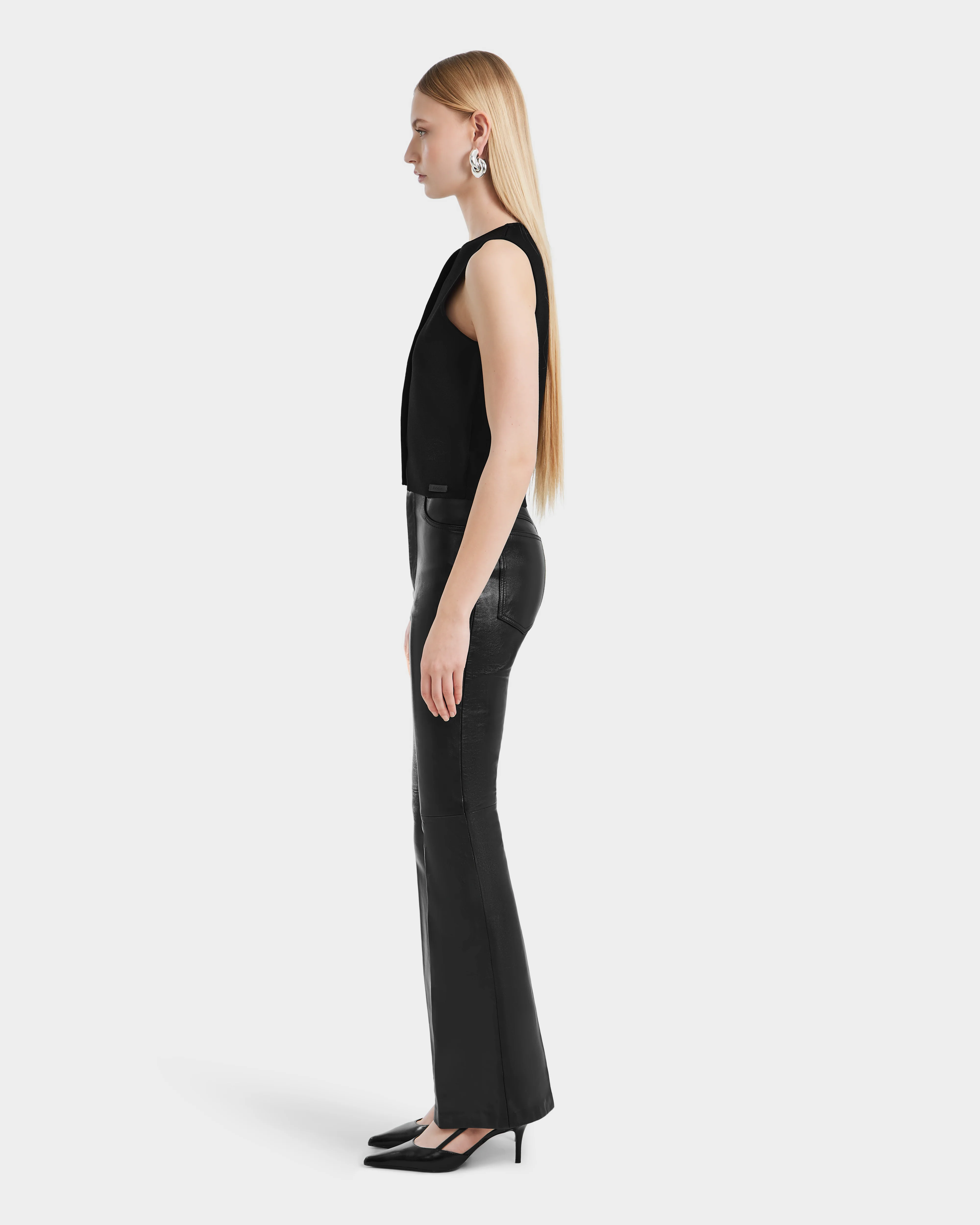 Turn heads with the CARISSA by RUDSAK, a women's pair of flare leather pants designed in luxe, supple leather. These striking pants feature hip and back pockets, blending practicality with high-fashion appeal. The flattering flare silhouette adds a touch of retro chic, perfect for elevating any outfit. Whether for a night out or a stylish day look, the CARISSA pants offer a bold statement piece for those who appreciate both elegance and edge in their wardrobe.