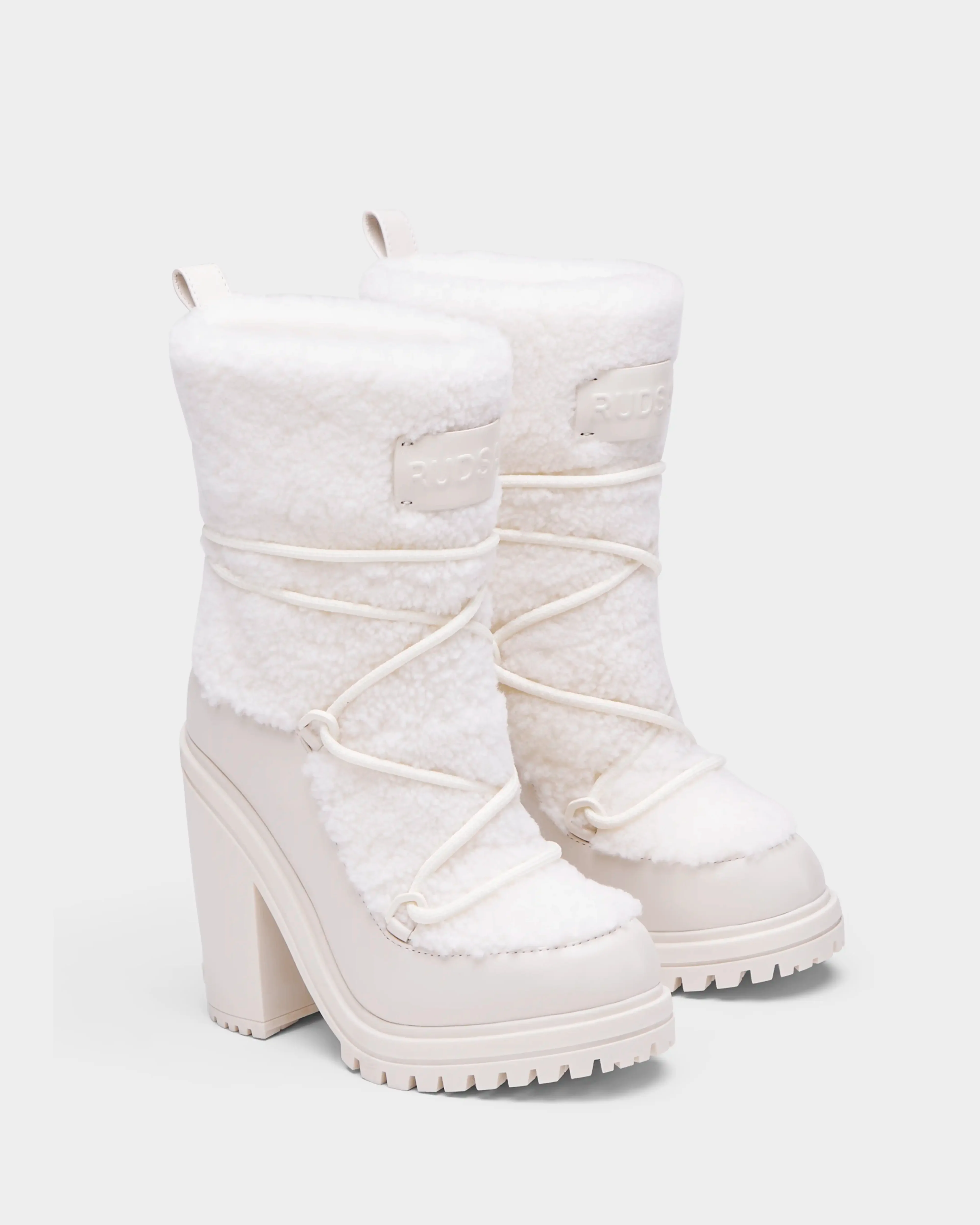 Elevate your style with TALYNA by RUDSAK, a pair of women's high-heel block ankle boots combining premium leather and luxe faux shearling. Featuring a front lace-up design and convenient slip-on functionality, these boots seamlessly blend fashion and comfort. Combined with a sophisticated design, the high-heel block and traction sole provides stability, making these women's boots perfect for any occasion. Create the pefect cold-weather look with the TALYNA ankle boots, designed to make a statement while ensuring all-day wearability.