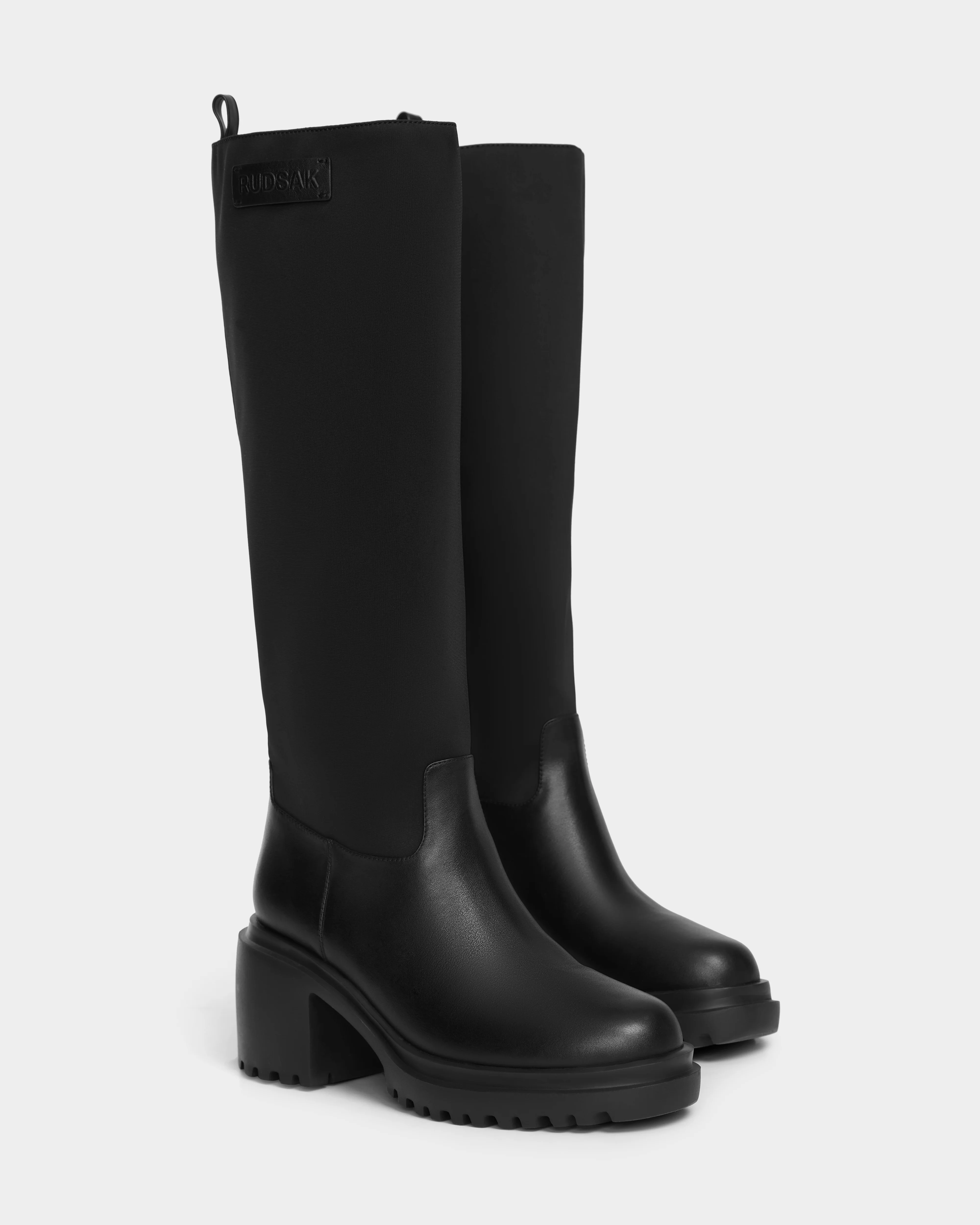 Complete your look with TIARA by RUDSAK, a stunning pair of women's mid-heel block high-shaft boots. Crafted from a sophisticated leather and fabric combo, these boots boast a sleek, classic design perfect for any wardrobe. The inner side zipper ensures easy wear, while the mid-heel block provides both comfort and everyday elegance. TIARA boots effortlessly blend fashion and functionality, making them an essential addition to your collection.